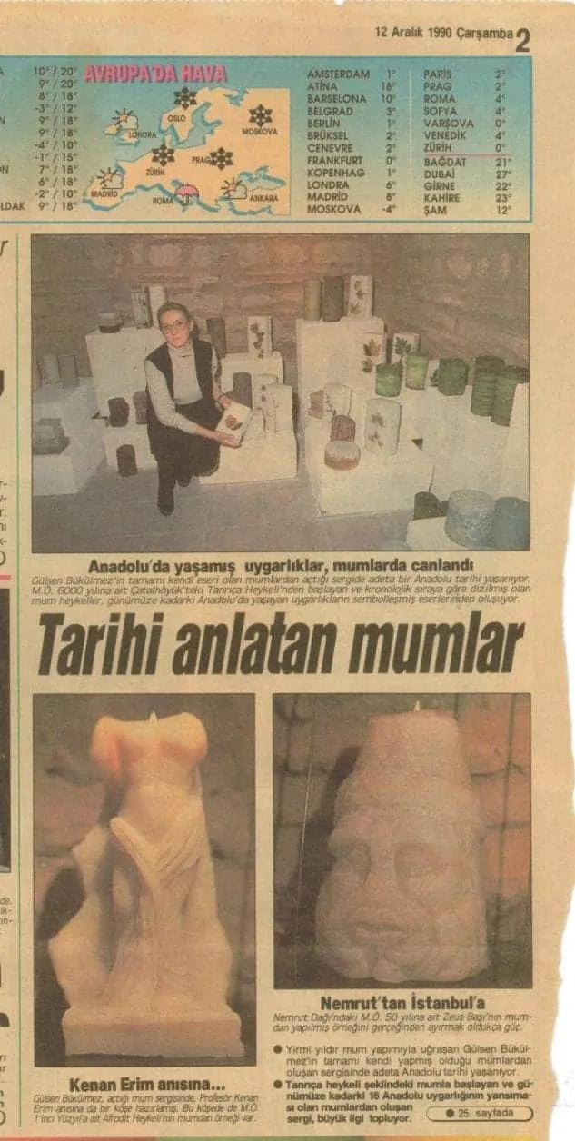 Arşivimizi karıştırdıkça birçok güzel anıyı hatırlıyoruz. Tay Mum Sergisi... 1990 yılında Kadın Eserleri Kütüphanesi ve Bilgi Merkezi’nde Türkiye’nin belki de ilk ve tek mum sergisini gerçekleştirdik. "Anadolu Uygarlıklarından Esinler" Sergisi’nde Anadolu’da yıllar boyunca hüküm sürmüş köklü uygarlıkların eserlerinden ilham alarak oluşturduğumuz mumlarımızı ilk kez sergiledik. Roma, Bizans, Selçuklu ve Osmanlı devletlerine ait kültürlerden esinlendiğimiz koleksiyonumuz yıllarca başta Avrupa olmak üzere tüm dünyaya ihraç edildi. Halen bizim için en önemli koleksiyonlarımızdan biri olarak varolmakta, satılmakta ve ilgi görmekte..